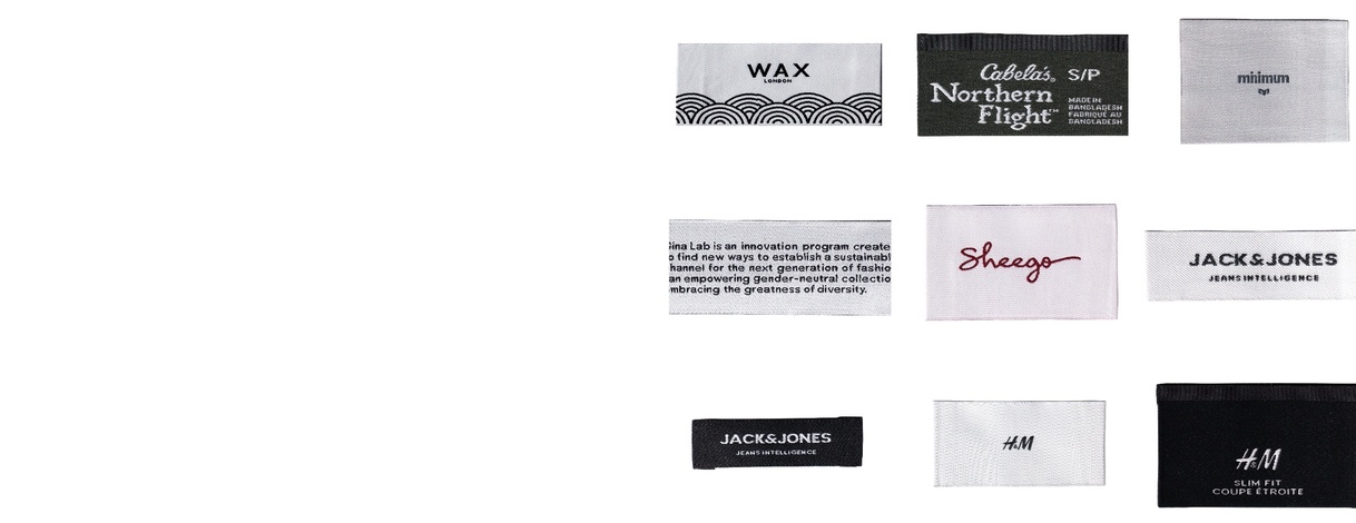 b)Woven Label Types: Brand labels, Care labels, Pocket flag tags, Composition labels and Decorative labels.